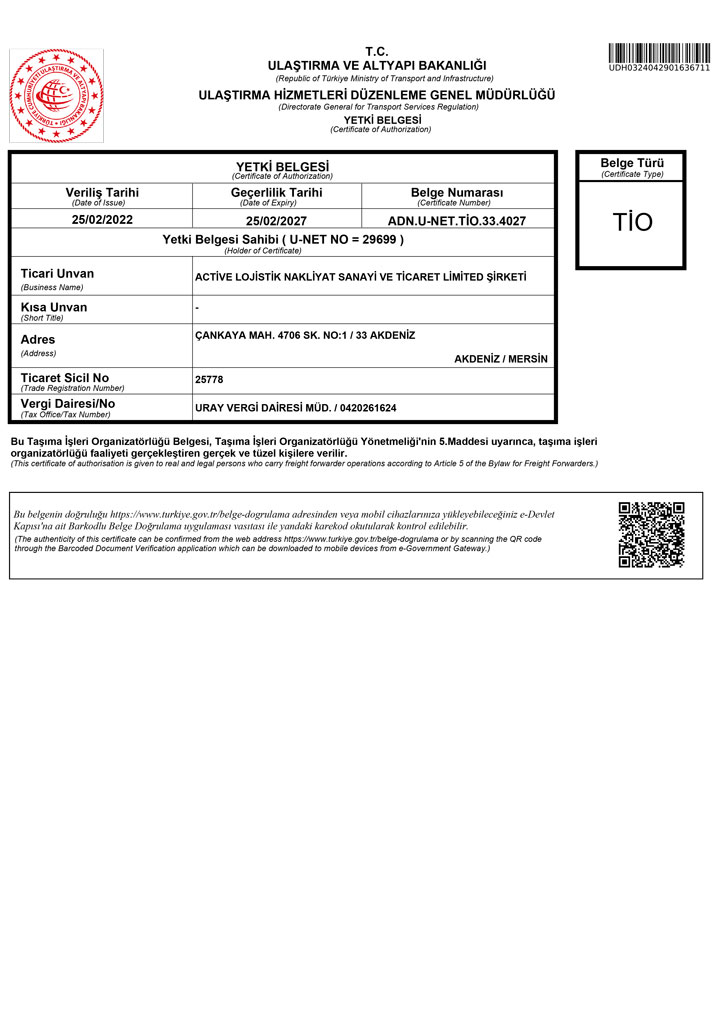 Active Lojistik Destek Hattı